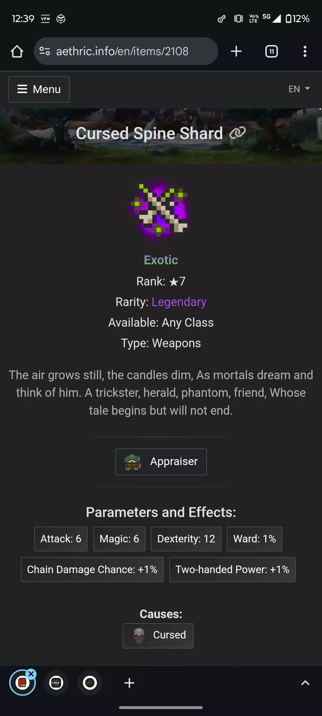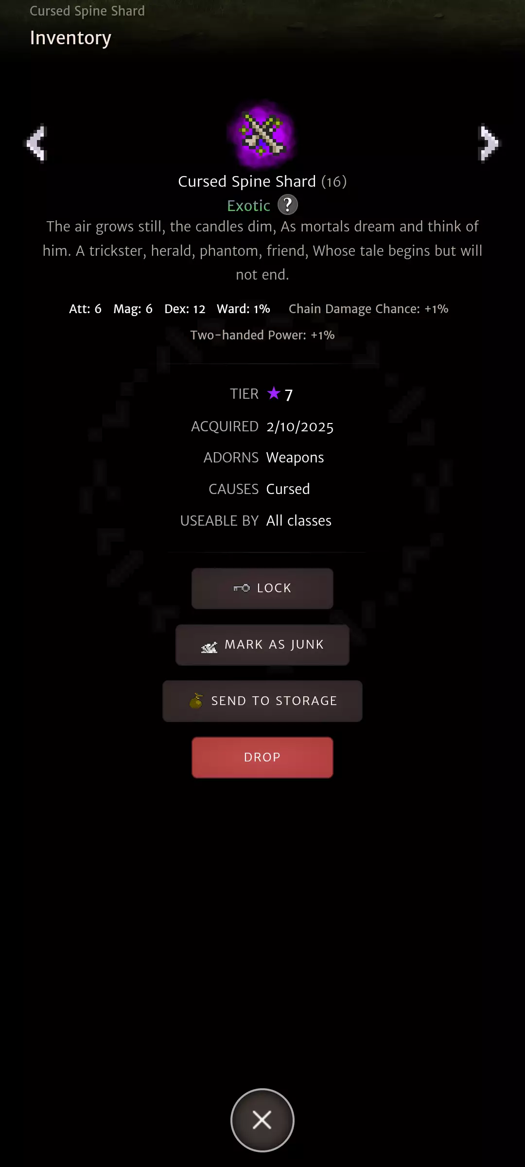 The site mentions spine shard as a weapon but its an adornment.